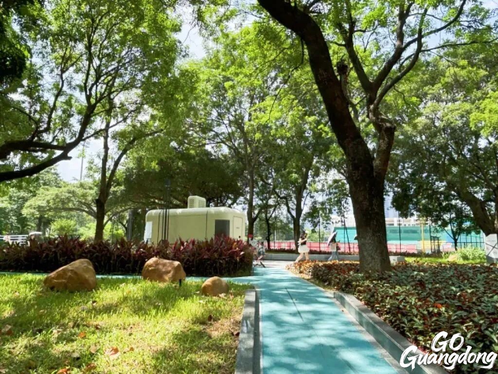Creating a "boundless" sports park stands as another highlight of the renovation. All venues of the Tianhe Sports Center are now connected. Walls and temporary structures have been replaced with open green spaces and seating areas, integrating scattered paths into the city's public space network. Peoplecan freely wander through this lush "boundless" sports park, jogging in the mornings, relaxing in the evenings, or enjoying quality family time on weekends.