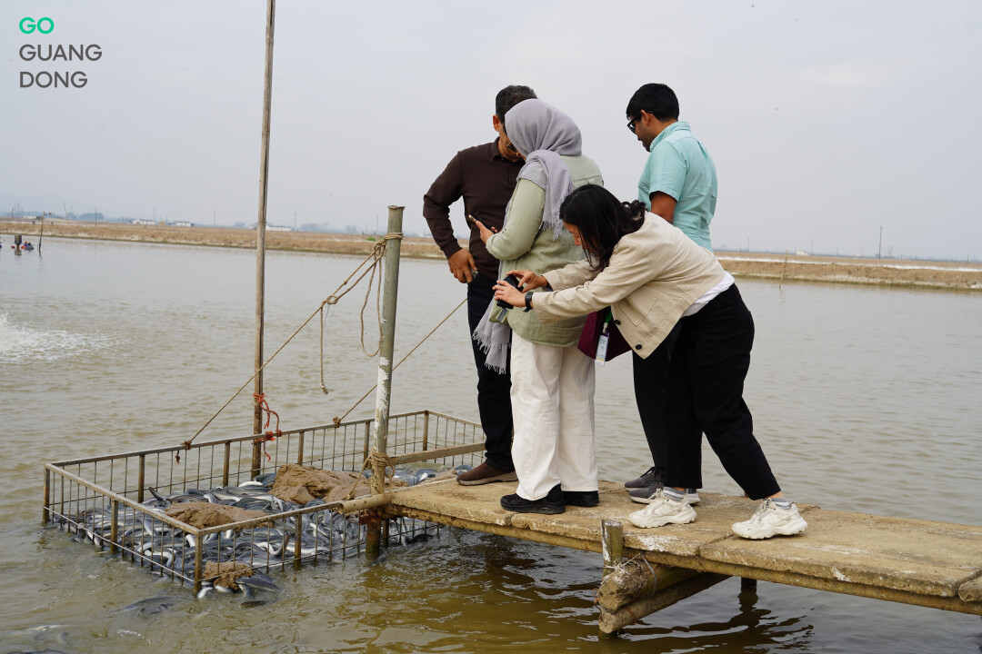 The delegation explores the sea bass industry in Baijiao Town, Doumen District, Zhuhai City.