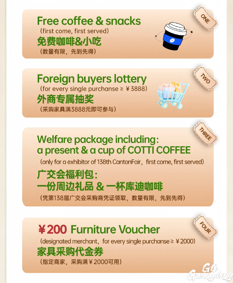 Visitor privileges provided by Sunlink Furniture City (South) during the 138th Canton Fair